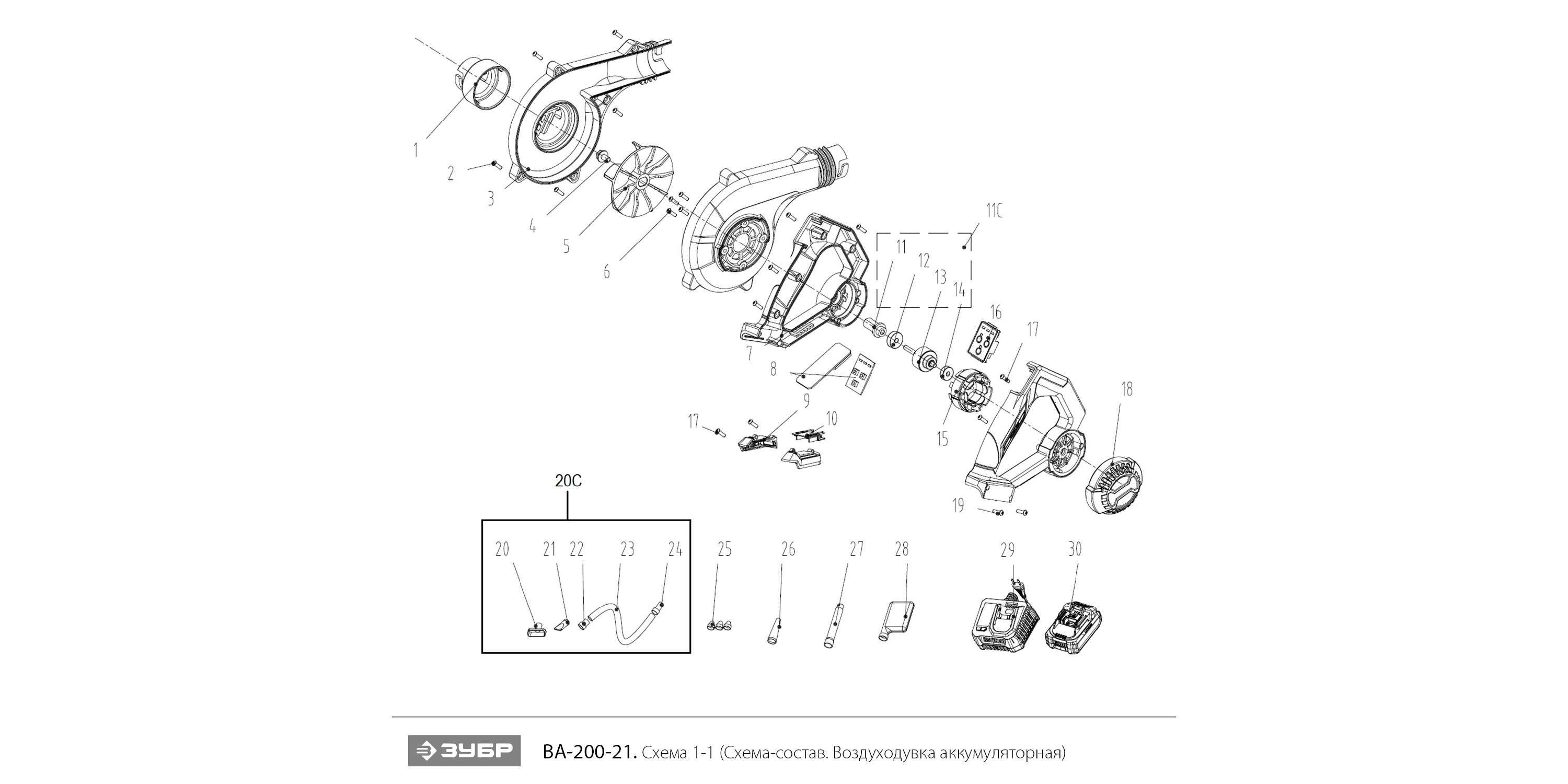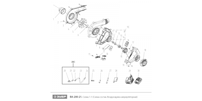 Воздуходувка-пылесос аккумуляторная 20 В, 1 АКБ LMS (2 Ач) ВА-200-21