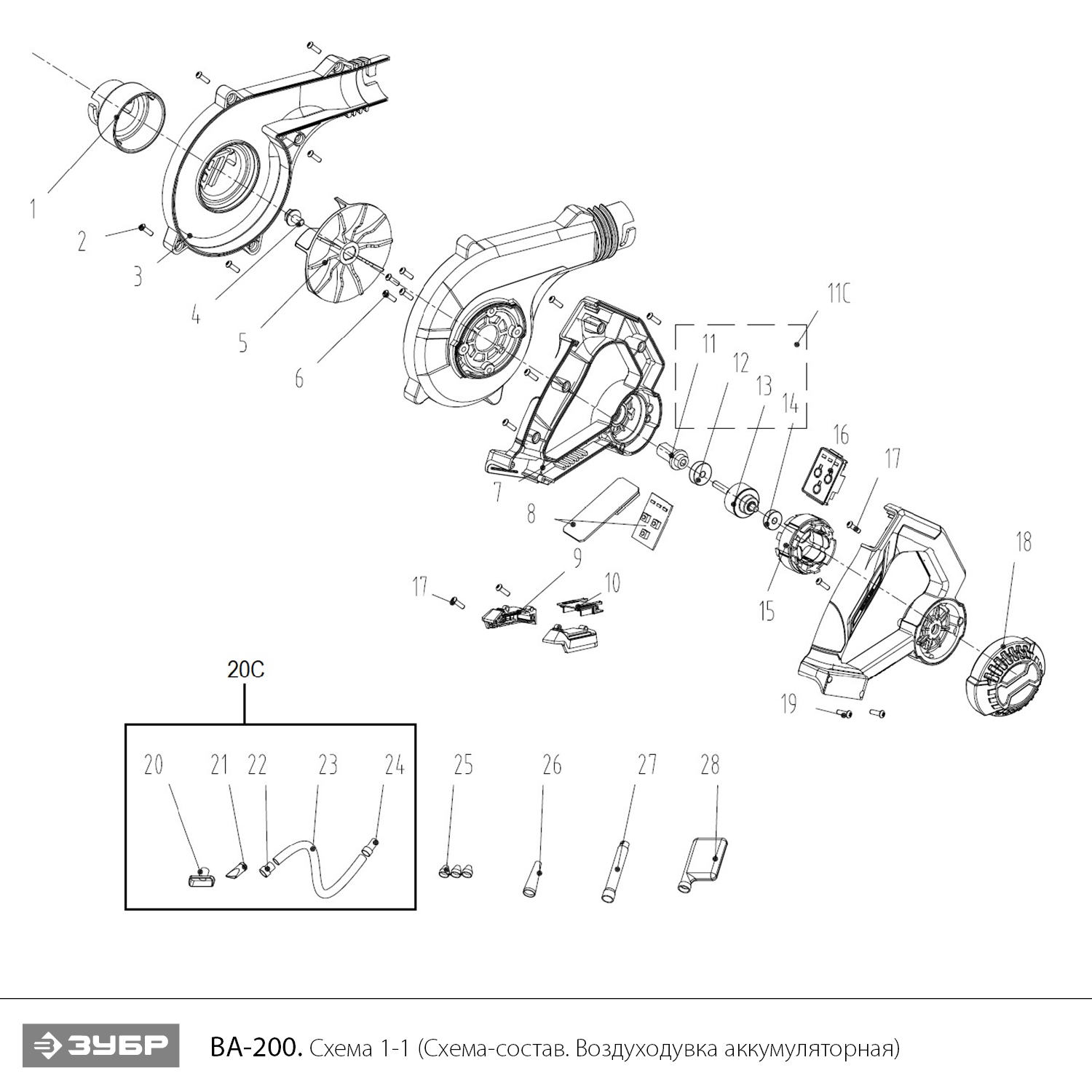 Воздуходувка-пылесос аккумуляторная 20 В, без АКБ (LMS) ВА-200