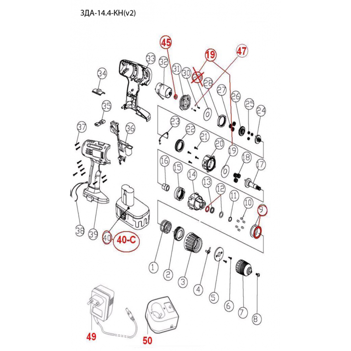 Дрель - шуруповерт, 2 АКБ ЗДА-14.4-КН