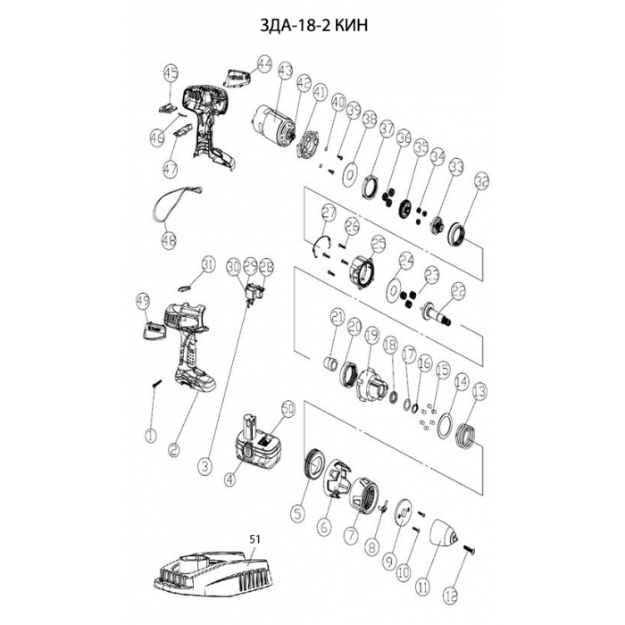 Дрель - шуруповерт, 2 АКБ ЗДА-18-2 КИН