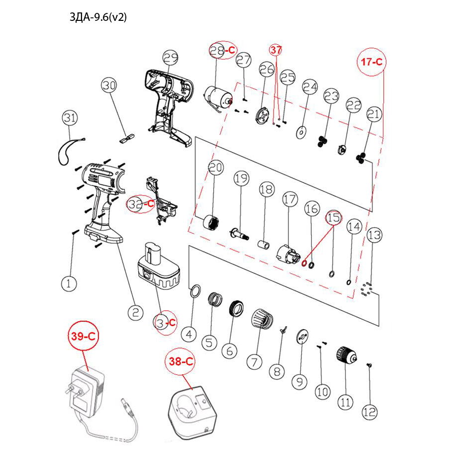 Дрель - шуруповерт ЗДА-9.6