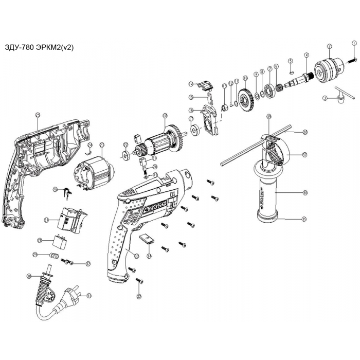 Дрель ударная + кейс ЗДУ-780 ЭРКМ2