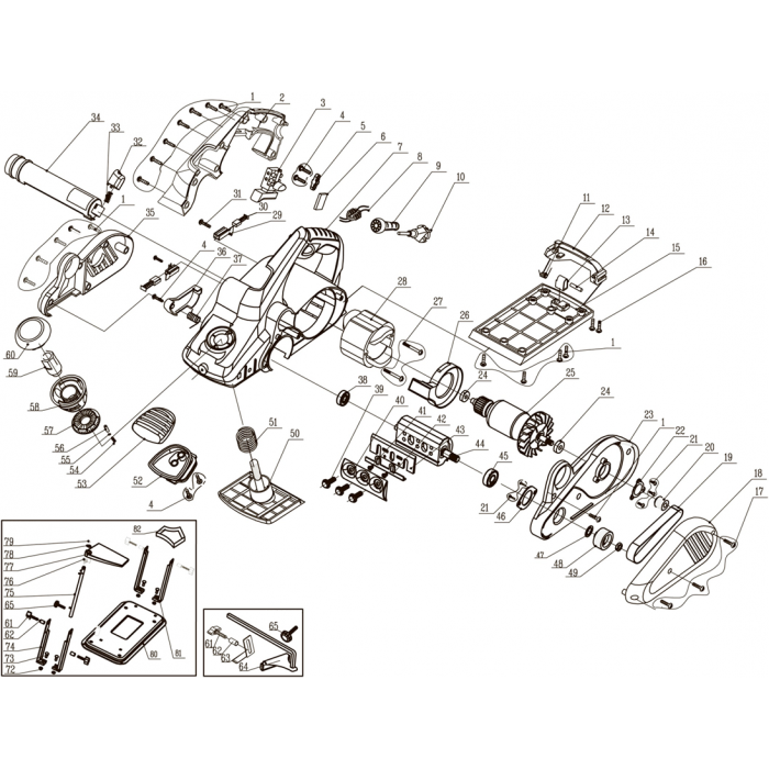 Мощный рубанок для строгания и выравнивания поверхностей, выборки четвертей и снятия фасок, который способен обрабатывать древесину любой твердости шириной 110 мм и глубиной до 3.5 мм. Максимальная функциональность: станина для установки в стационарное положение, электронная система защиты и управления двигателем, выборка четверти, изменяемое направление выброса стружки (влево и вправо), дополнительная рукоятка для удобного хвата, пазы для снятия фасок разной ширины, откидной башмак для защиты заготовки и оператора.