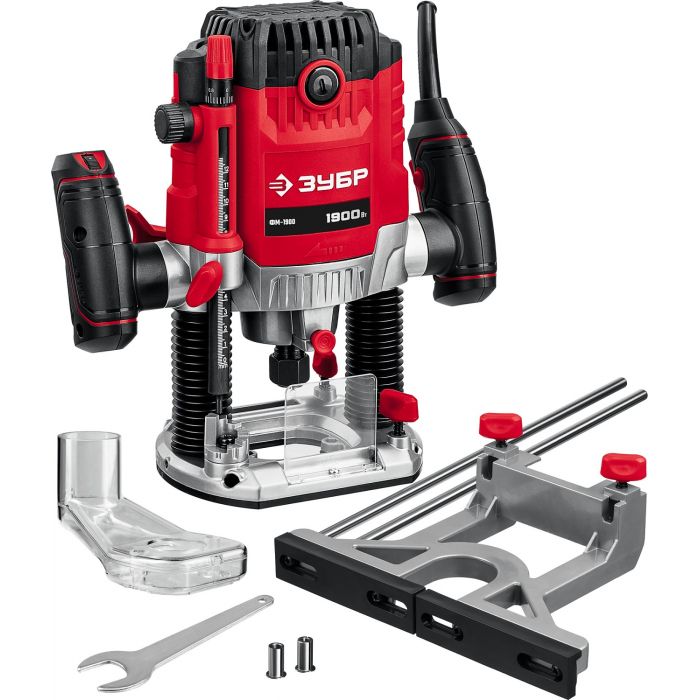 Фрезер ЗУБР – многофункциональное изделие для различных видов фрезерования (в т.ч. фигурного, по шаблону, по радиусу). Большая мощность позволяет работать с фрезами большого диаметра и с максимальной глубиной погружения. Точная настройка глубины фрезерования, три вида цанг для установки различных фрез, точный выбор оборотов, комплект принадлежностей для различных работ