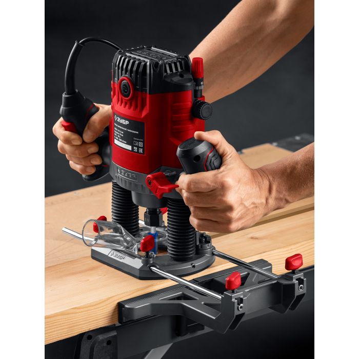 Фрезер ЗУБР – многофункциональное изделие для различных видов фрезерования (в т.ч. фигурного, по шаблону, по радиусу). Большая мощность позволяет работать с фрезами большого диаметра. Максимальная глубина погружения 70 мм позволяет выполнять пазы под замки в полотнах дверей. Точная настройка глубины фрезерования, три вида цанг для установки различных фрез, точный выбор оборотов, комплект принадлежностей для различных работ
