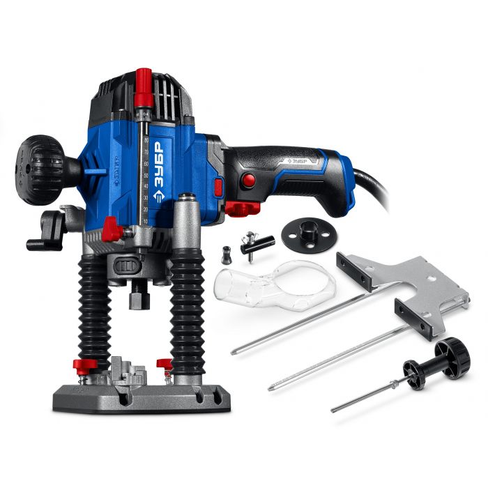 Фрезер ЗУБР серии Профессионал – многофункциональное изделие для всех видов фрезерования (продольного, фигурного, по шаблону, по радиусу) различных материалов. Мощный двигатель обеспечивает эффективную и производительную работу. Максимальная глубина погружения 80 мм позволяет выполнять пазы под замки в полотнах дверей. Удобная эргономика и бОльшая маневренность благодаря удлиненной основной рукоятке способствуют удобству при работе