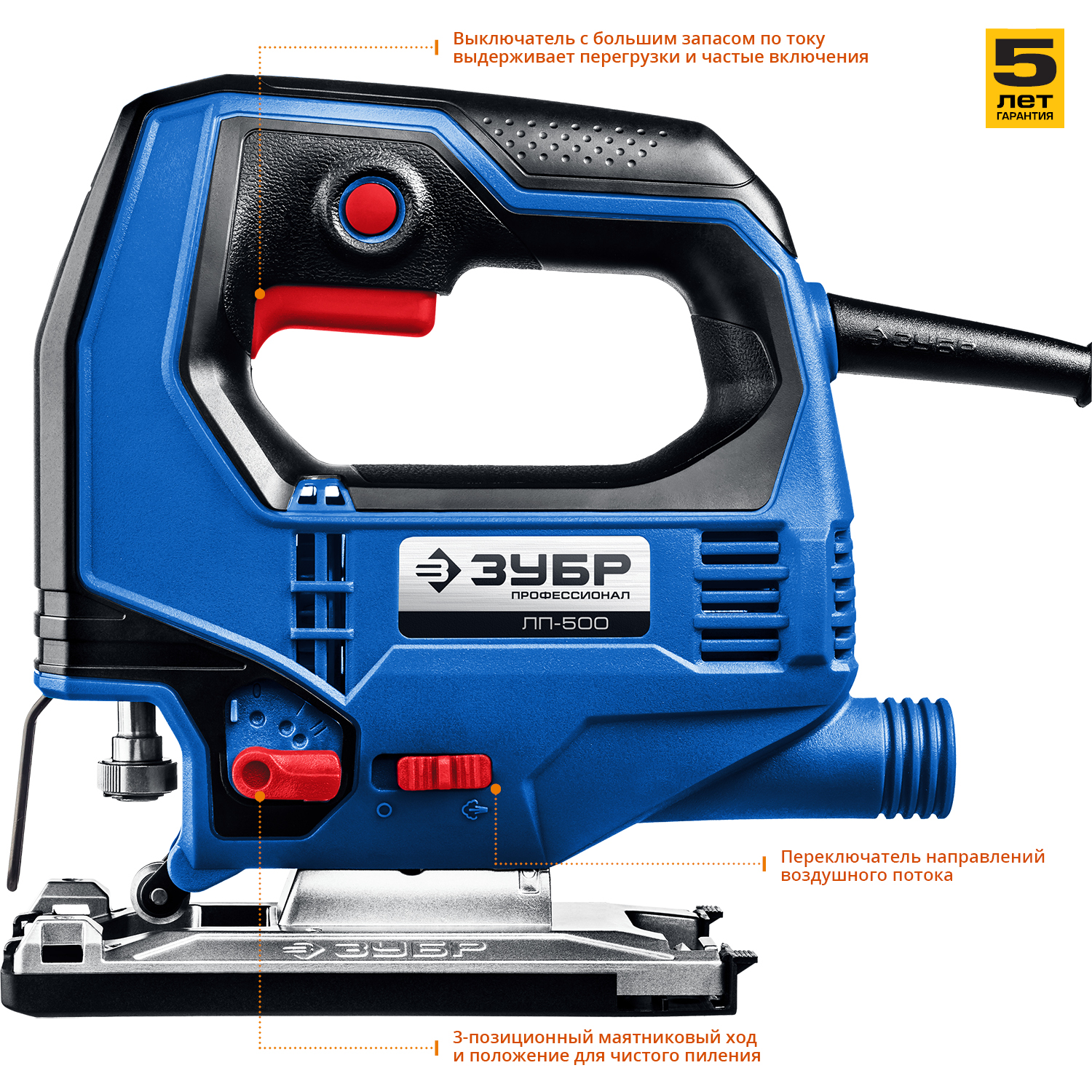 Профессиональный инструмент для всех видов пиления (прямого, наклонного, криволинейного) различных материалов (дерева, фанеры, пластика, металла) от тонких листов до досок толщиной 65 мм. Компактный и мощный, с удобным хватом и отличной маневренностью. Полезные ″мелочи″ вроде вставки для чистого пиления, легко скользящей накладки на основание, встроенного крепления ключа и переключения направлений обдува помогают работать комфортно и эффективно