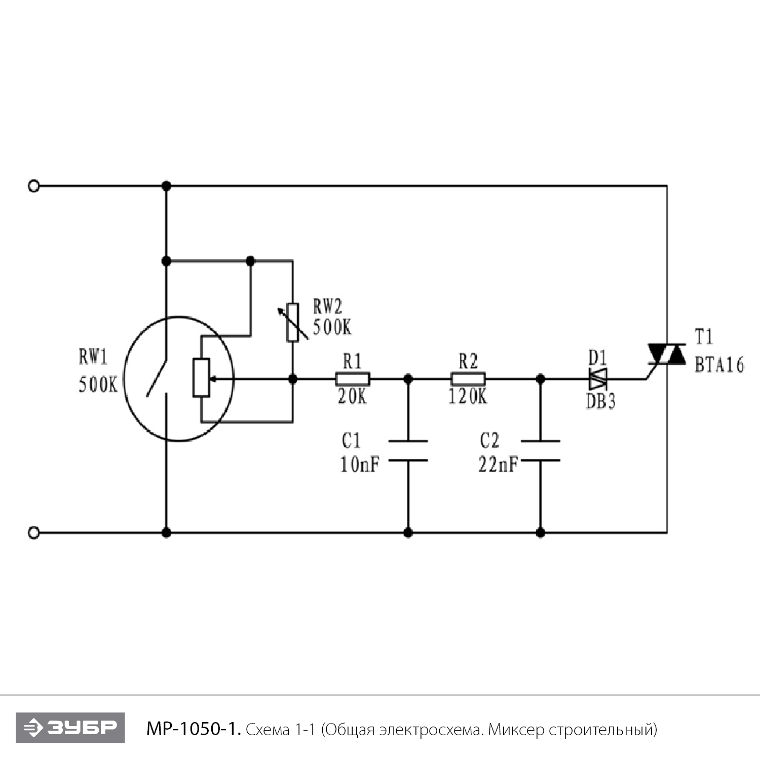 Миксер строительный, 2 скорости МР-1050-1