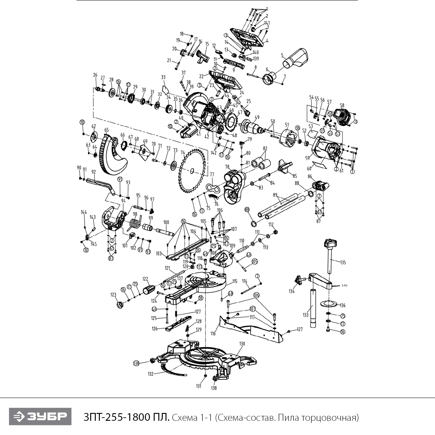Пила торцовочная 1 шт. Диск пильный (установлен) 1 шт. Удлинители стола 2 шт. Струбцина 1 шт. Мешок для сбора пыли 1 шт. Ключ гаечный 1 шт. Руков: