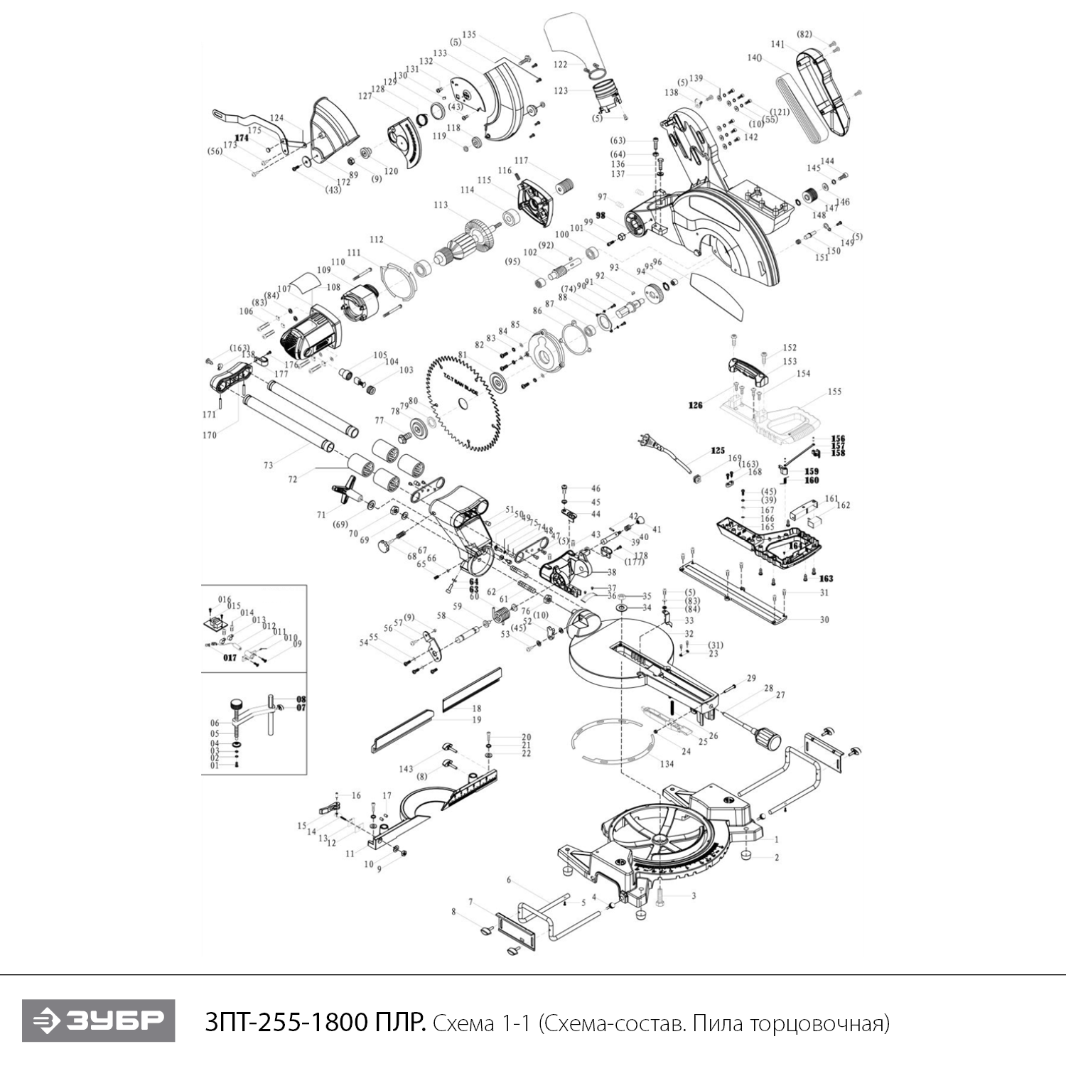 Пила торцовочная 1 шт. Диск пильный (установлен) 1 шт. Удлинители стола 2 шт. Струбцина 1 шт. Мешок для сбора пыли 1 шт. Ключ гаечный 1 шт. Руков: