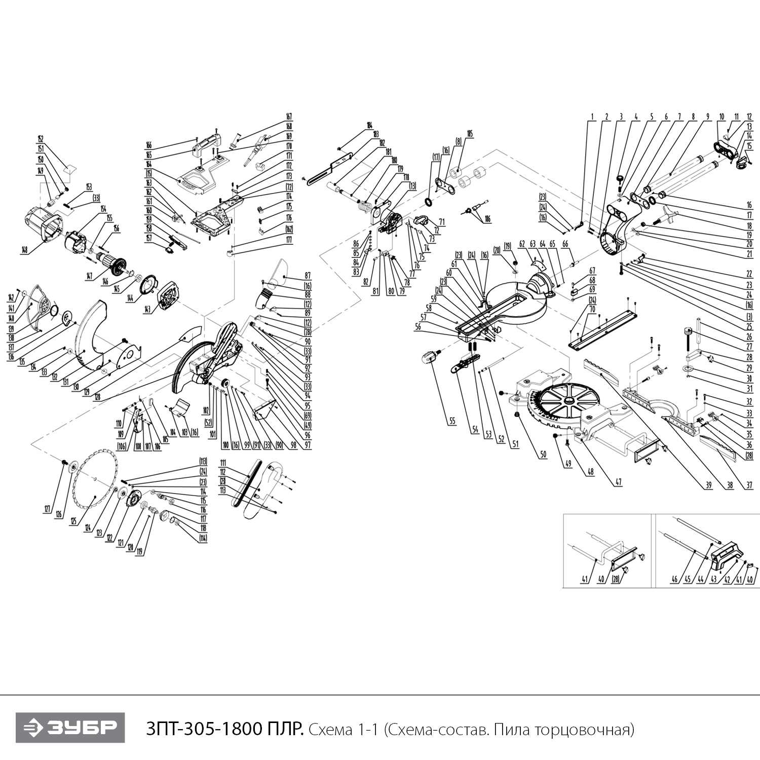 Пила торцовочная 1 шт. Диск пильный (установлен) 1 шт. Удлинители стола 2 шт. Струбцина 1 шт. Мешок для сбора пыли 1 шт. Ключ гаечный 1 шт. Руков: