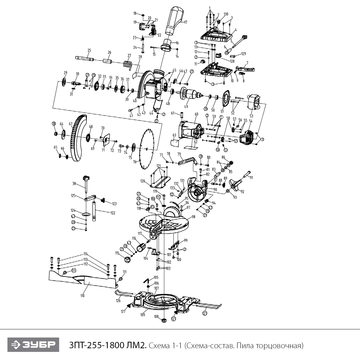 Пила торцовочная 1 шт. Диск пильный (установлен) 1 шт. Удлинители стола 2 шт. Струбцина 1 шт. Мешок для сбора пыли 1 шт. Ключ гаечный 1 шт. Руков