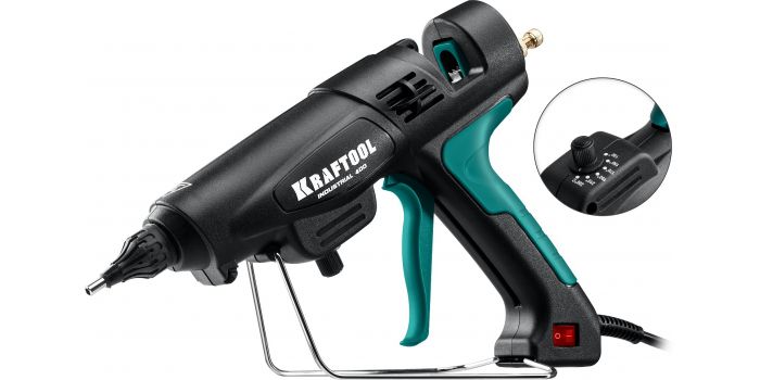KRAFTOOL 400W пистолет клеевой (термоклеящий), выход клея 50 г/мин, d=12мм, 400Вт/300Вт 06843-300-12