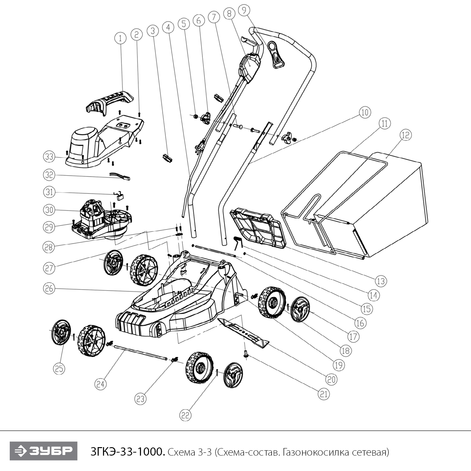 Газонокосилка сетевая ЗГКЭ-33-1000