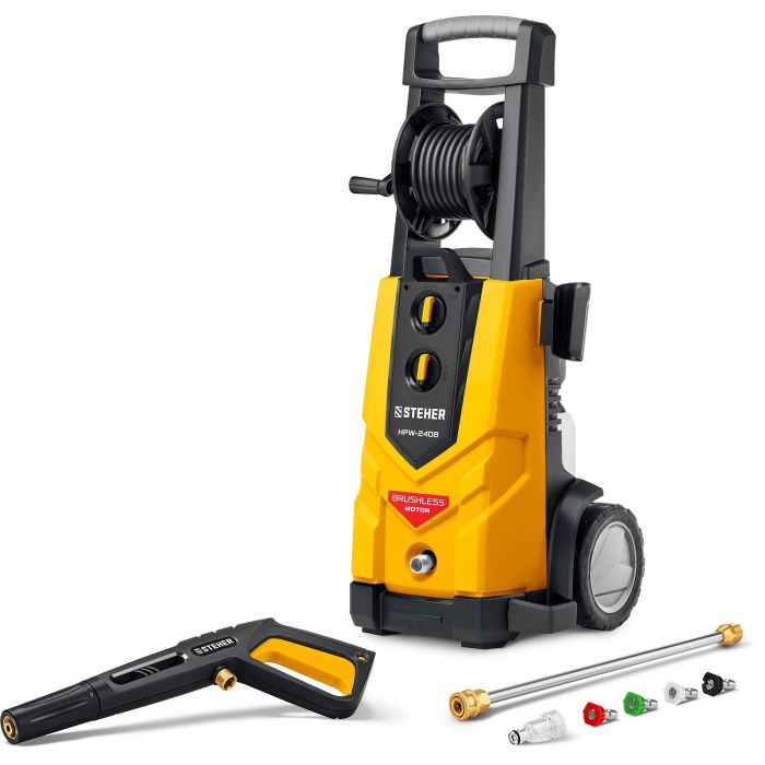 Профессиональные мойки высокого давления, оснащенные бесщеточным двигателем с низкими оборотами и высоким крутящим моментом, используются как для бытовых нужд, так и в сфере клининга или на профессиональной автомойке. Благодаря системе полной остановки, помпа не работает при ненажатом пистолете – это экономит воду и ресурс изделия при неизбежных паузах в работе. Элегантный дизайн и удобная конструкция с держателями для аксессуаров делают работу с изделием комфортной. Регулировка давления и формы выходной струи позволяет обрабатывать различные поверхности - автомобили, стены, велосипеды, напольные покрытия и т.п.
