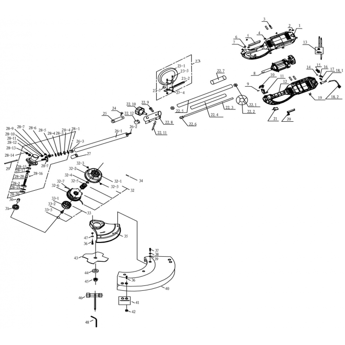 Триммер GRINDA, верхнее расположение двигателя, фреза 230мм, леска d=2.0 мм, 1200 Вт, 7500 об/мин GGTP-1200
