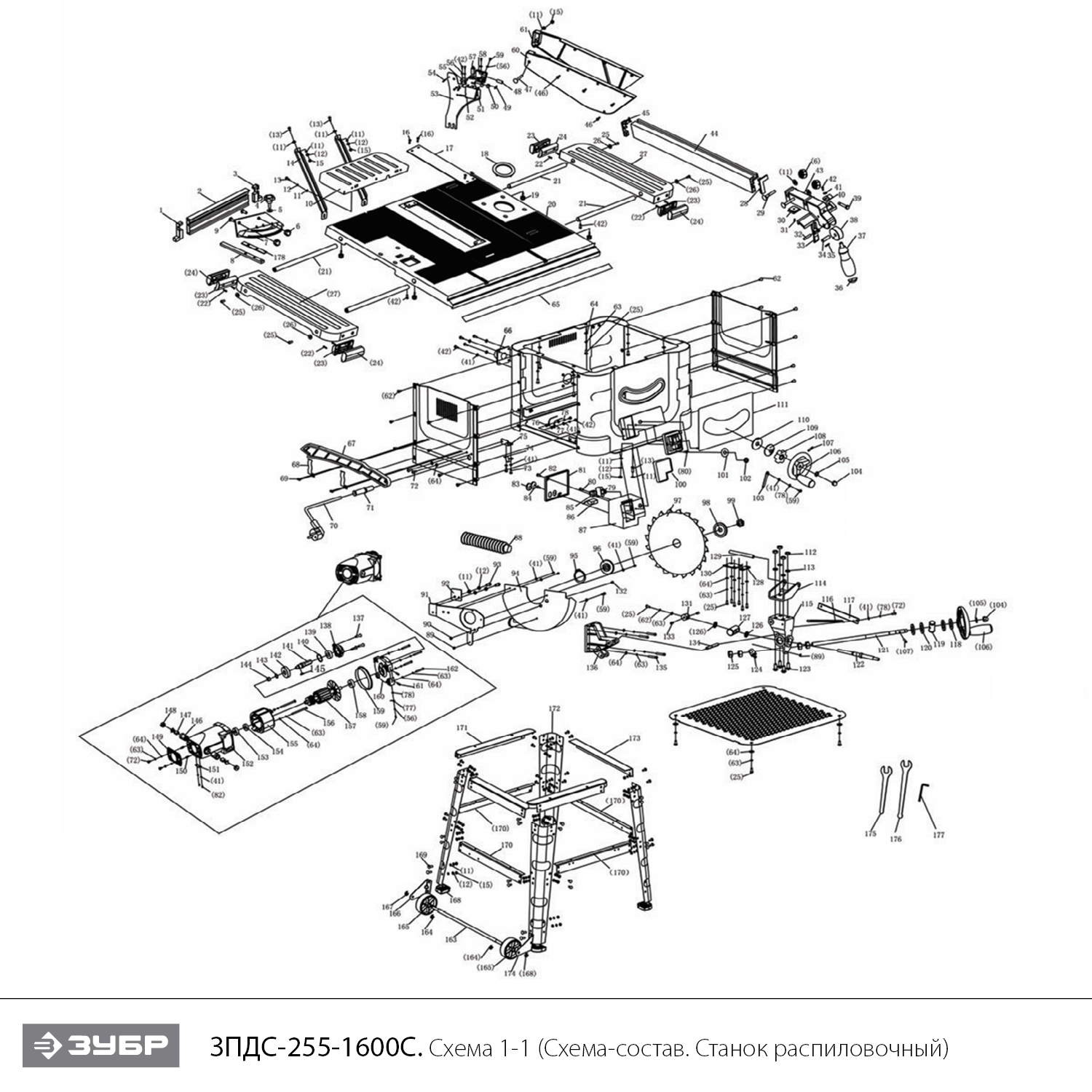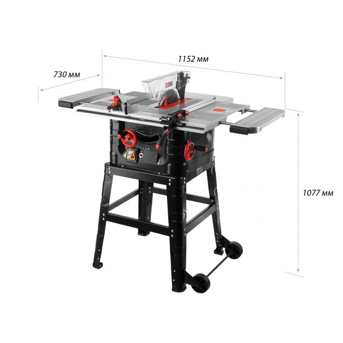 Пила настольная - 1 шт. Станина с креплением - 1 компл. Стол удлинительный - 3 шт. Кожух защитный - 1 шт. Расклиниватель - 1 шт. Элемент питания - 2 ш