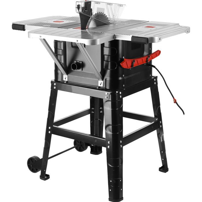 Пила настольная - 1 шт. Станина с креплением - 1 компл. Стол удлинительный - 3 шт. Кожух защитный - 1 шт. Расклиниватель - 1 шт. Элемент питания - 2 ш: