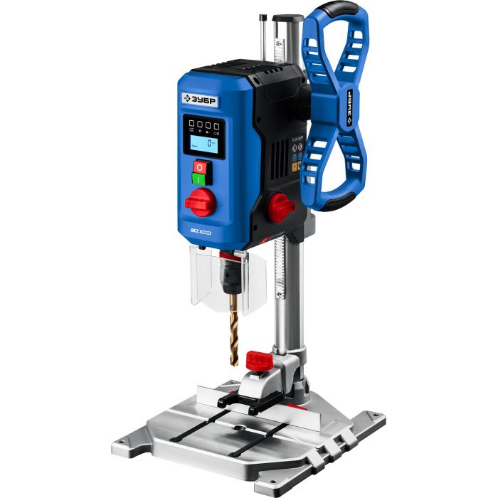 Профессиональный сверлильный станок для точных работ. Быстрое и качественное сверление отверстий в различных материалах (при установке соответствующих типов сверл). Электронный дисплей позволяет считывать информацию о текущей скорости и глубине сверления во время эксплуатации. Быстрозажимное устройство позволяет нажёжно фиксировать даже круглые заготовки, обеспечивая высокую точность выполняемых отверстий. Лазерный указатель точно указывает точку вхождения сверла в материал, обеспечивая быстрое получение точного результата. LED подсветка рабочей зоны. Двухступенчатый редуктор позволяет подобрать оптимальные режимы для обрабатываемого материала