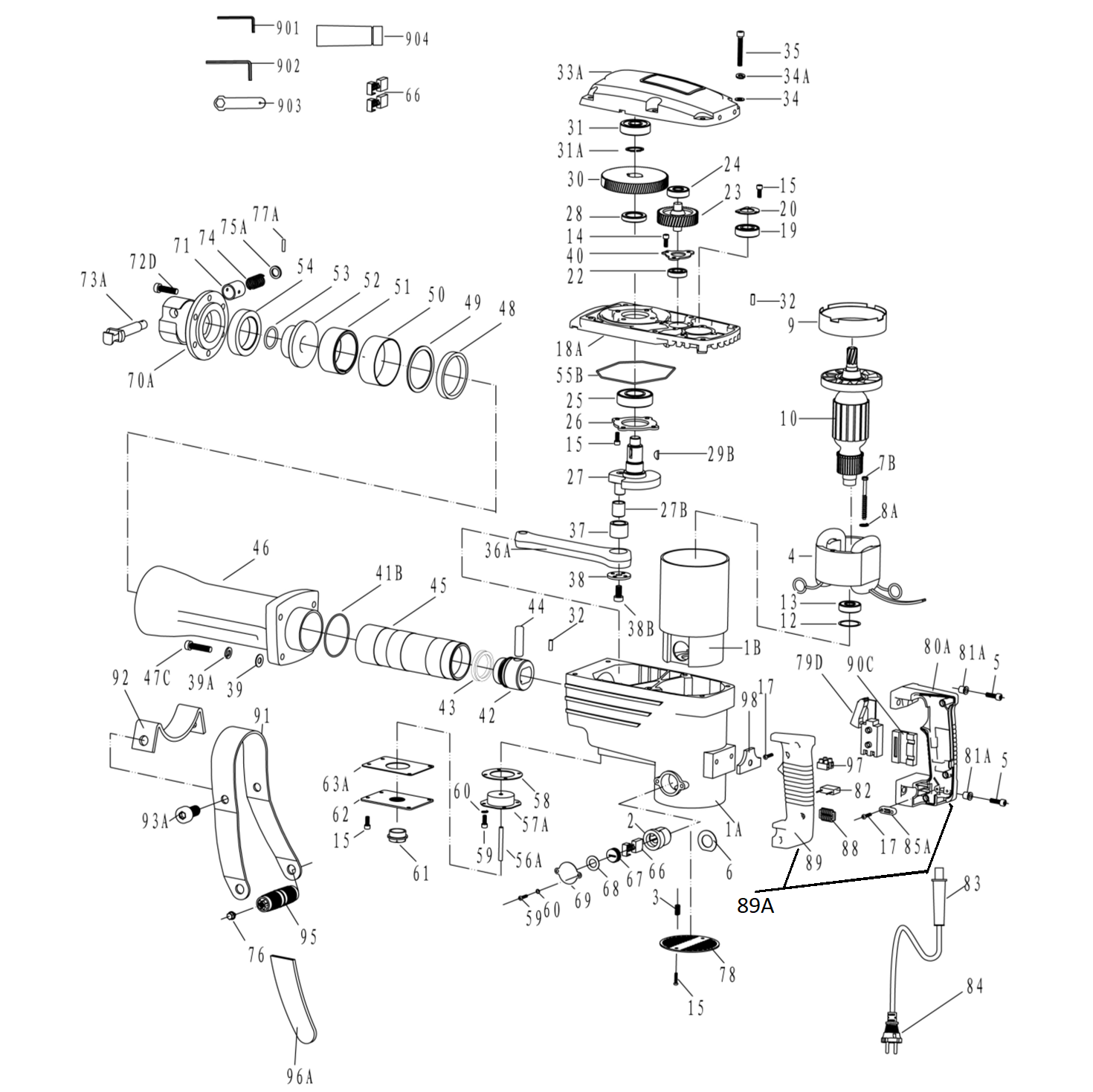 Мощнейший инструмент для ударного разрушения любых конструкций. Значительная энергия удара 40 Дж подкреплена соответствующей конструкцией: вертикальная компоновка двигателя, металлический корпус, патрон НЕХ 30