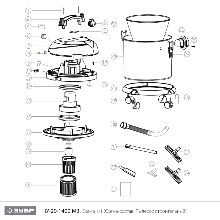 Строительный пылесос ЗУБР предназначен для уборки помещений, а также для принудительного удаления продуктов пиления, строгания, фрезерования и т.п. из рабочей зоны электроинструмента. Он незаменим для поддержания чистоты в гараже, мастерской, удаления мусора во время ремонта в квартире или на даче. Бак из нержавеющей стали объемом 20 л очень долговечен. а синхронное включение с инструментом, подключенным через розетку пылесоса позволит сохранить чистоту на рабочем месте.