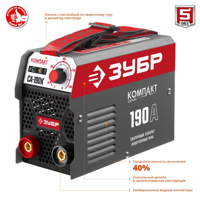 Компактный сварочный инвертор предназначен для ручной электродуговой сварки с применением плавких электродов (ММА). Электронные компоненты и микропроцессорное управление сварочным током обеспечивают малый вес и габариты, стабильность характеристик и оперативное подстраивание к любым условиям процесса сварки. ЗУБР - передовые технологии у Вас на службе