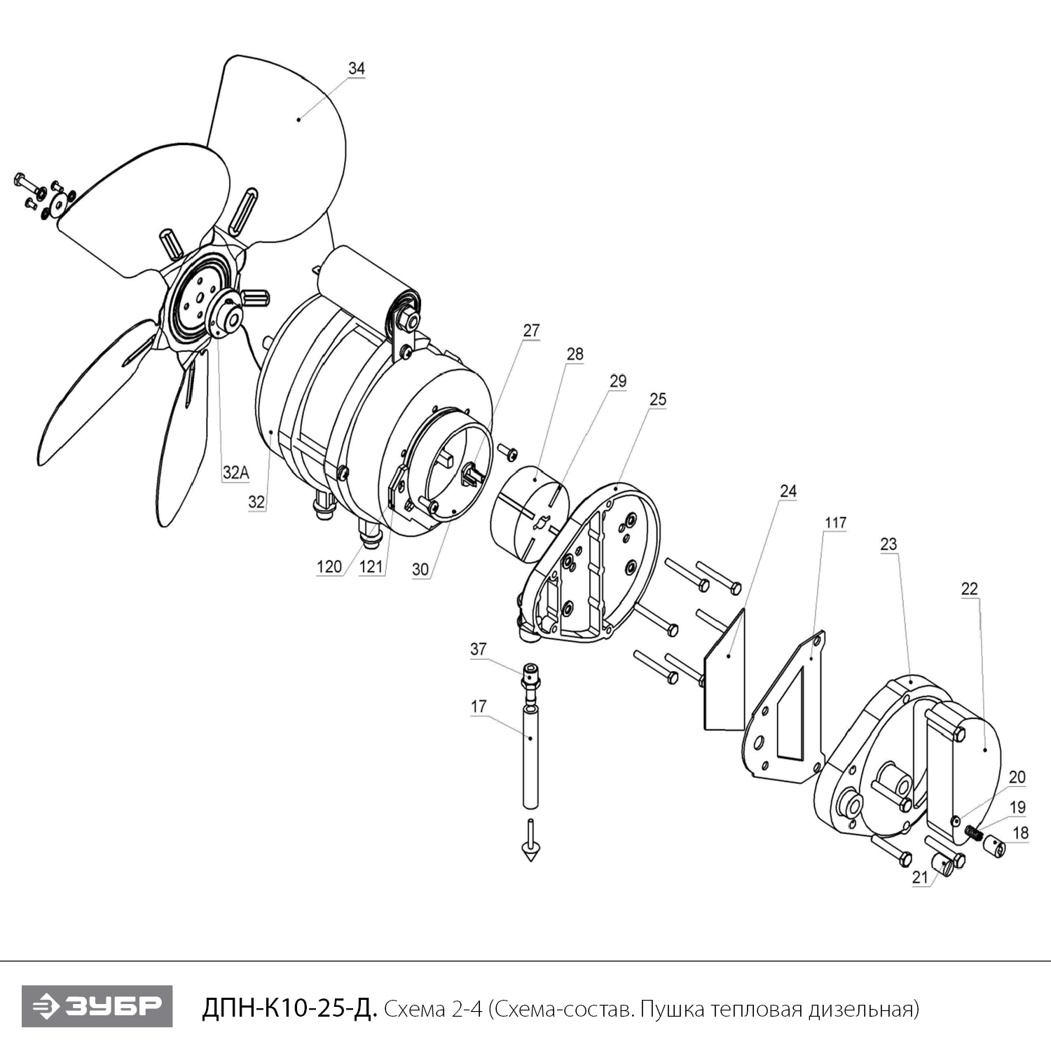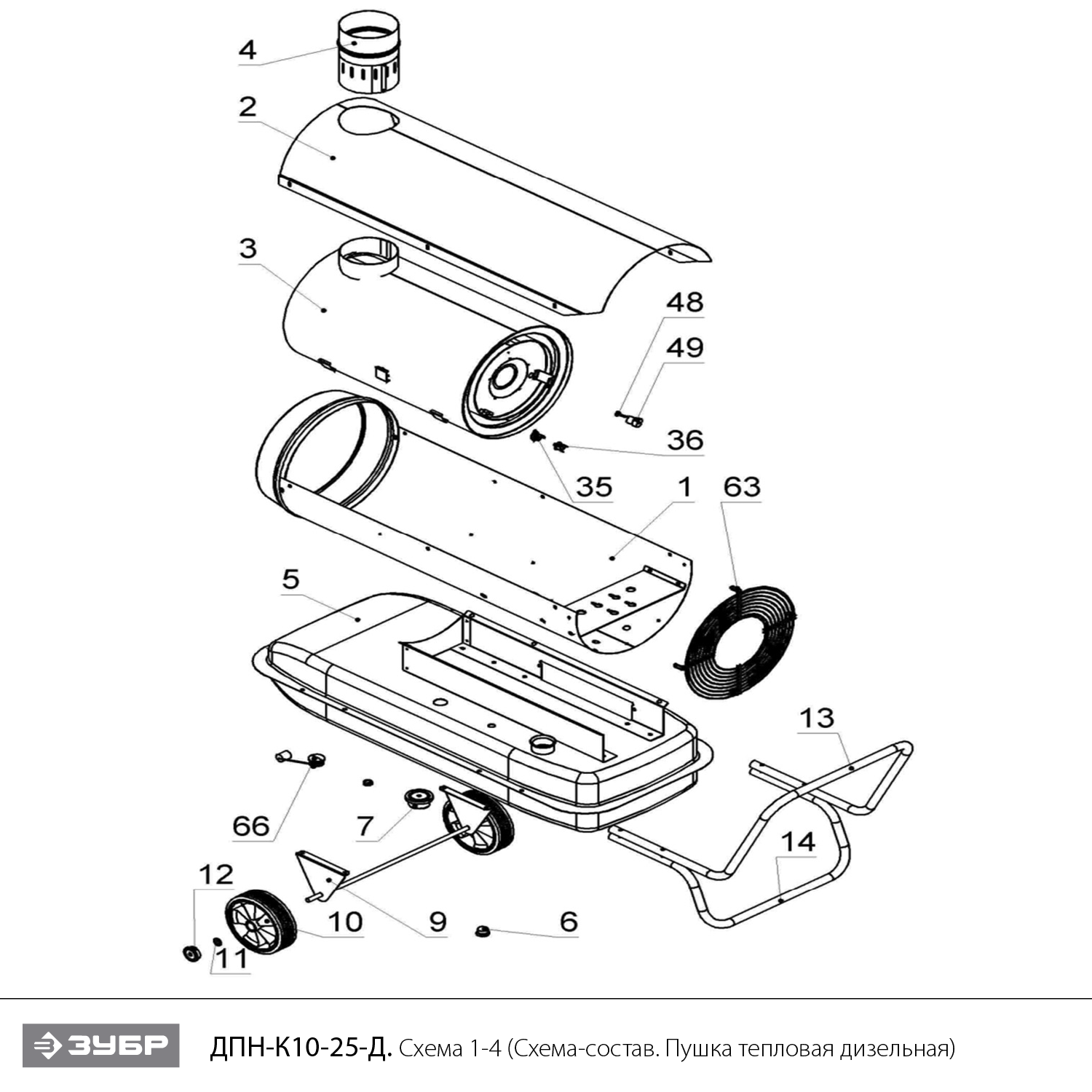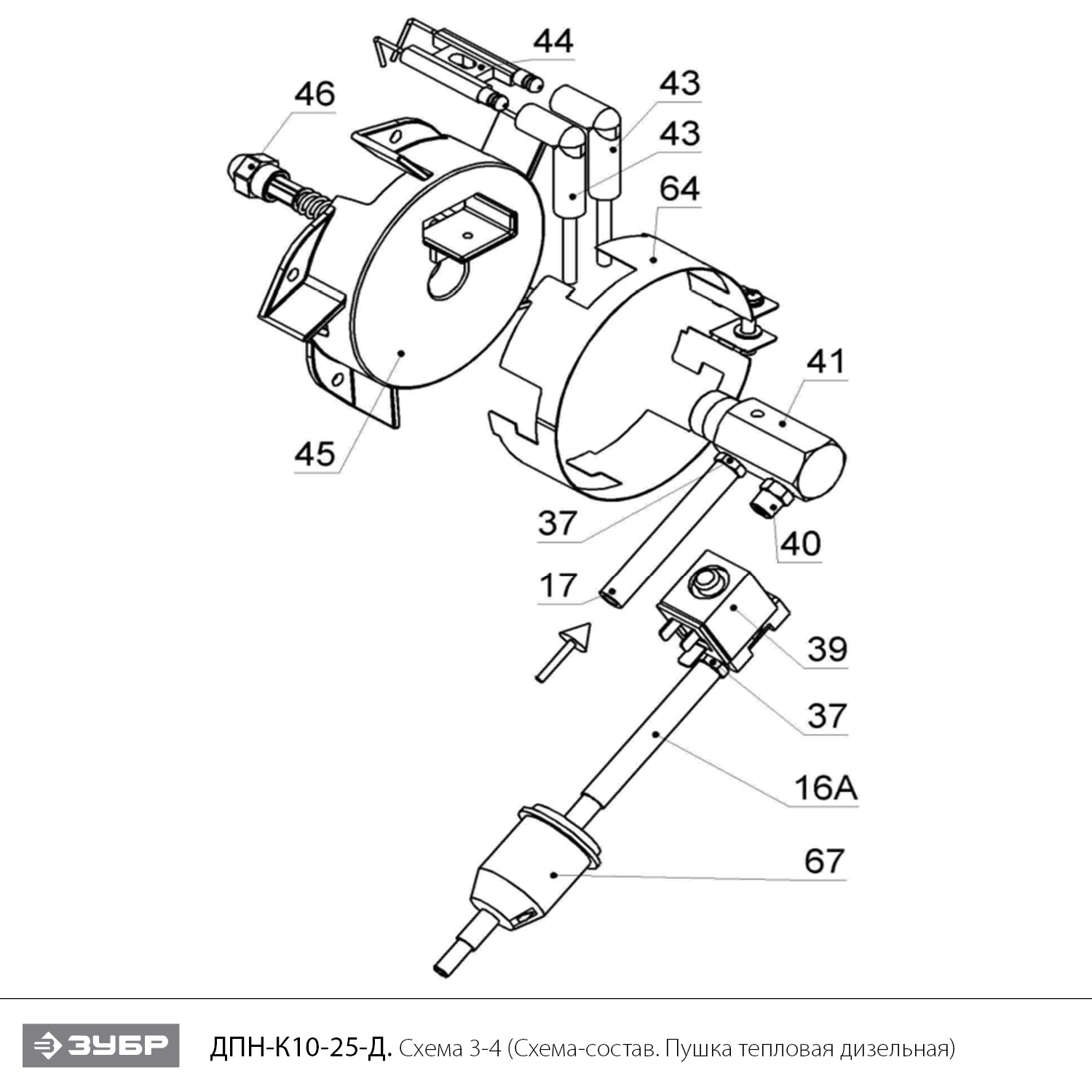 -Дизельная пушка, шт, 1 шт, -Ручка, шт, 1 шт, -Манометр, шт, 1 шт, -Вилка, шт, 1 шт, -Колесо, шт, 2 шт, -Подставка, шт, 1 шт, -Ось для колес, шт, 1 шт: