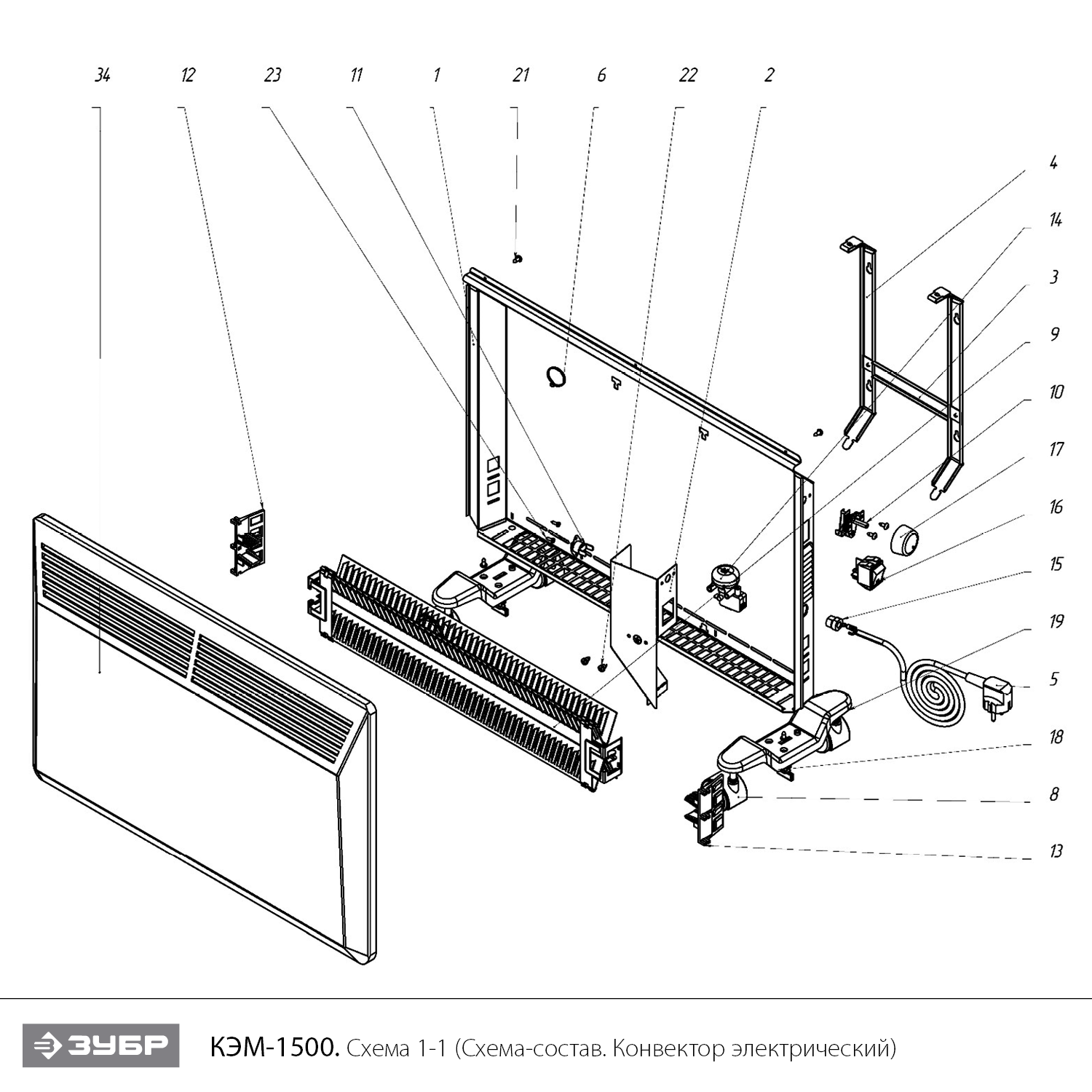 Электрический конвектор ЗУБР мощностью 1500 Вт - подойдет для обогрева любых домашних и офисных помещений, включая ванные комнаты, площадью до 20 м2. Сделано в России