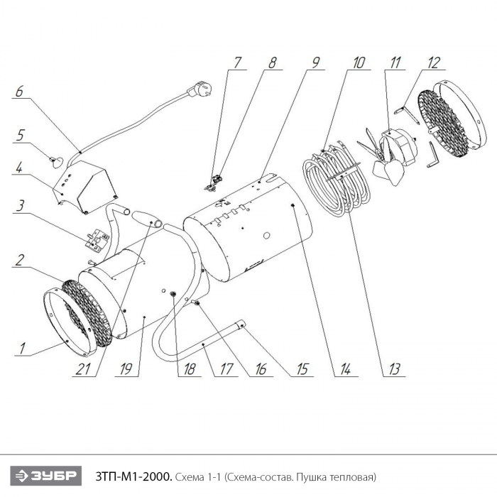 -Пушка тепловая, шт, 1 шт, -Руководство по эксплуатации, шт, 1 шт,