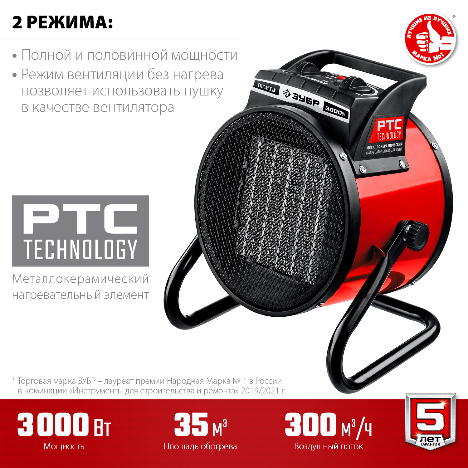 Электрические тепловые пушки ЗУБР серии ТПК–Р компактные пушки в круглом корпусе для обогрева небольших помещений. Благодаря небольшим размерам тепловую пушку легко переносить и хранить. Устройства оснащены долговечным металлокерамическим нагревательный элементом, обеспечивающий быстрый равномерный нагрев, экономное потребление электроэнеергии и не сушит воздух. Механический терморегулятор поддерживает нужную температуру нагрева. За счет большой площади теплообмена и небольшой температуры нагрева элемента, воздух быстро прогревается. Изделие можно оставлять на долгое время и не бояться за сохранность помещения, так как конструктивные меры безопасности защищают Вас и изделие при нештатных ситуациях.