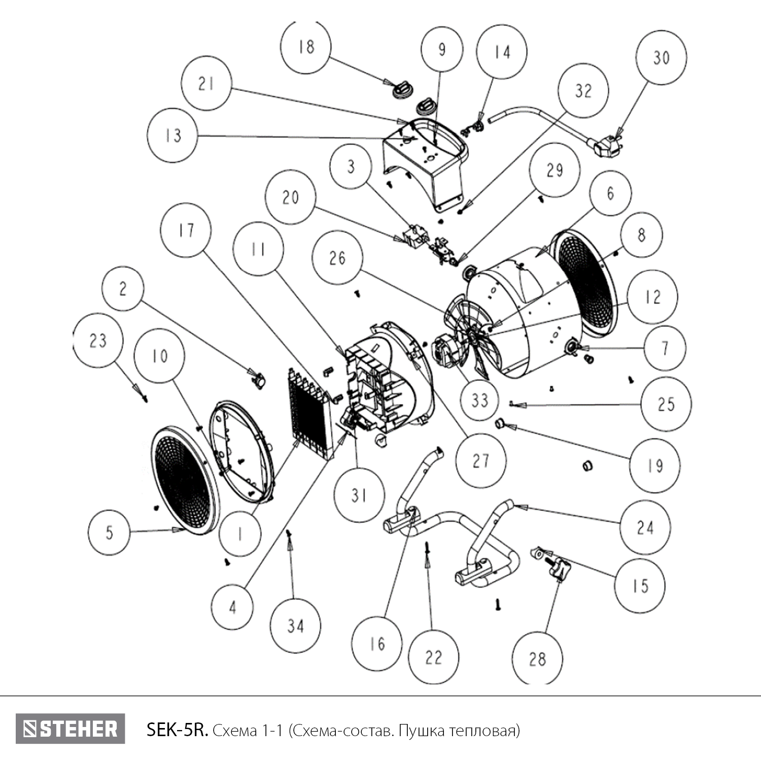 -Пушка тепловая в сборе, шт, 1 шт, -Руководство по эксплуатации, шт, 1 шт,