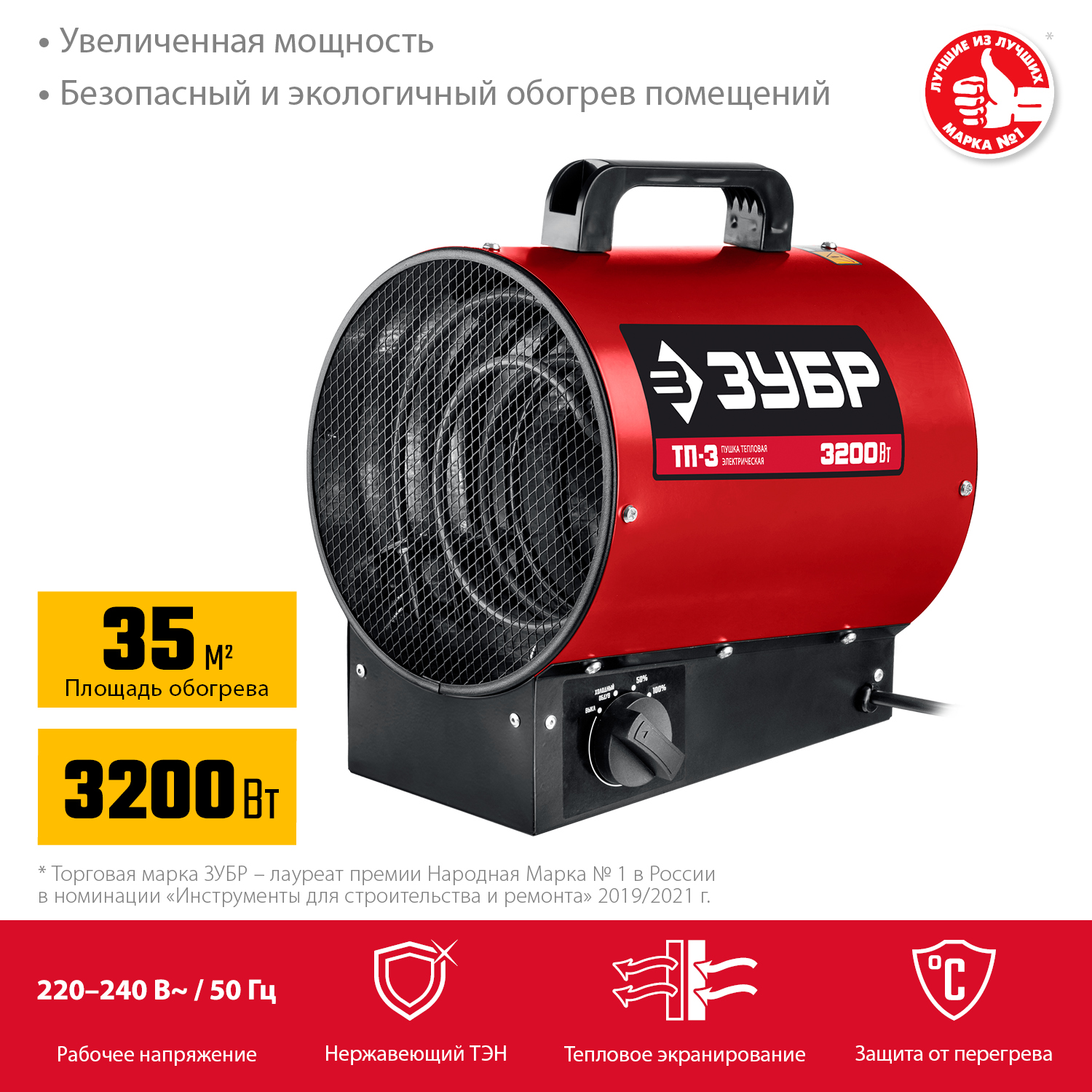 Компактный и легкий обогреватель в круглом корпусе для квартиры, загородного дома, мастерских гаражей и т.д. Большая площадь ТЭНов и эффективный обдув способствуют более быстрому нагреву помещения. Конструктивные меры безопасности (дополнительный защитный кожух, термопредохранитель, заземление корпуса) защищают Вас и изделие при нештатных ситуациях. Сделано в России ЗУБР - тепло и уют Вашего дома