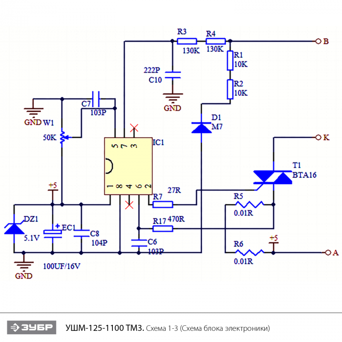 УШМ (Болгарка) с регулировкой оборотов, 125 мм, компакт УШМ-125-1105 ЭТ