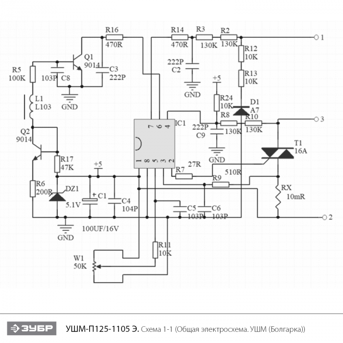 УШМ (Болгарка) с регулировкой оборотов, 125 мм, МИГ, АВТ УШМ-П125-1105 Э