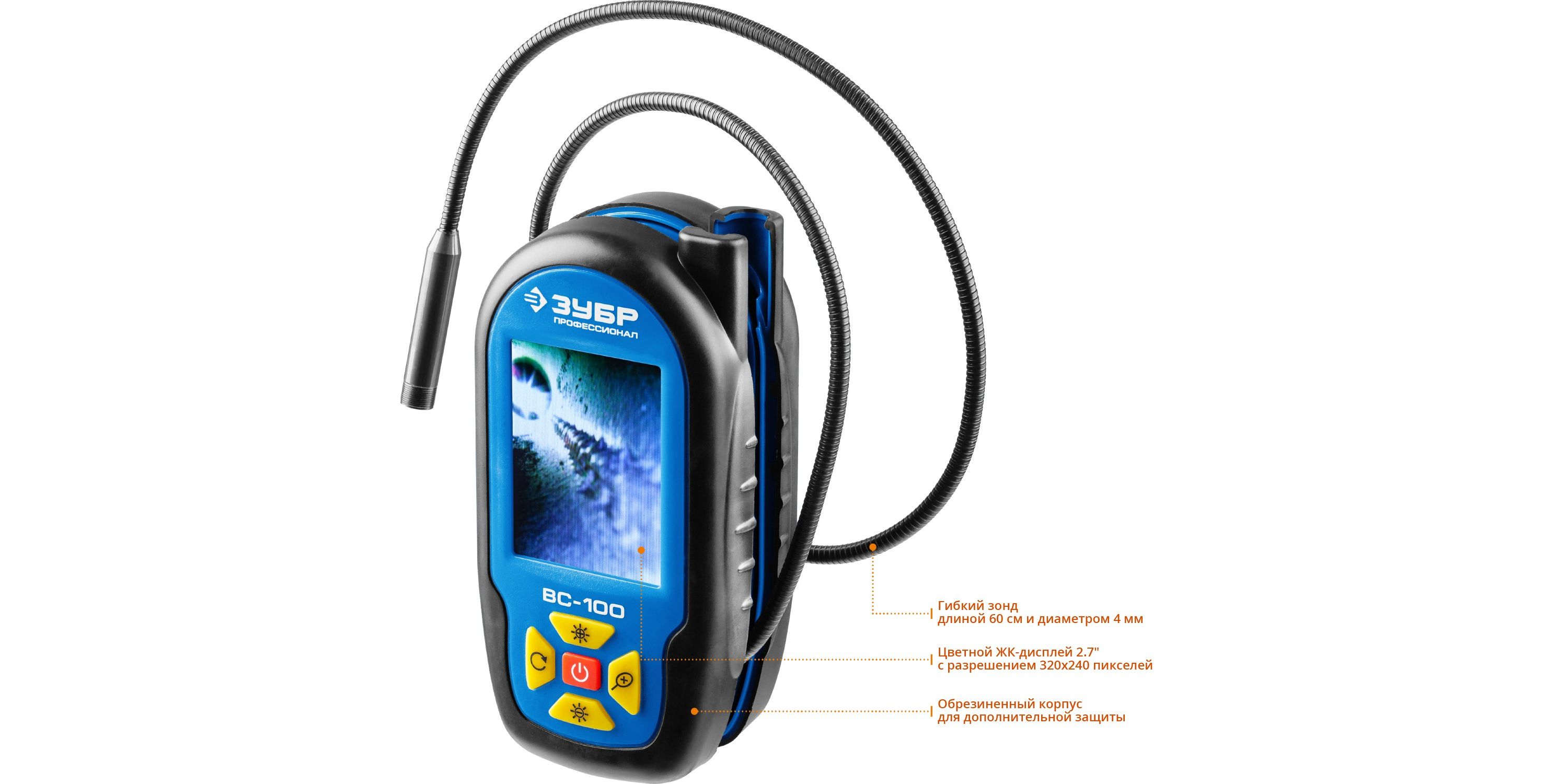 Видеоскопы ЗУБР позволяют быстро и качественно произвести осмотр систем отопления, вентиляции и кондиционирования, проверить элементы находящиеся в труднодоступных местах автомобилей и другой техники, не прибегая к частичному или полному ее демонтажу. Степень защиты IP67 позволяет использовать щуп прибора для диагностики систем водоснабжения. Низкое энергопотребление обеспечивает до 3 часов работы от одного комплекта батарей.