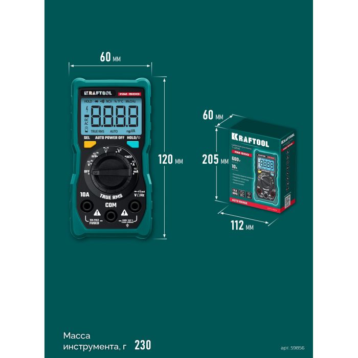 Портативный автоматический цифровой мультиметр KRAFTOOL гарантирует высокую точность измерений. Применение высококачественных материалов обеспечивает длительный срок службы. Прибор имеет функции измерения переменного и постоянного напряжения, сопротивления, емкости, проверки целостности цепей со звуковым сигналом, проверки диодов, измерения переменного и постоянного тока, измерение частоты до 3МГц и измерение температуры.