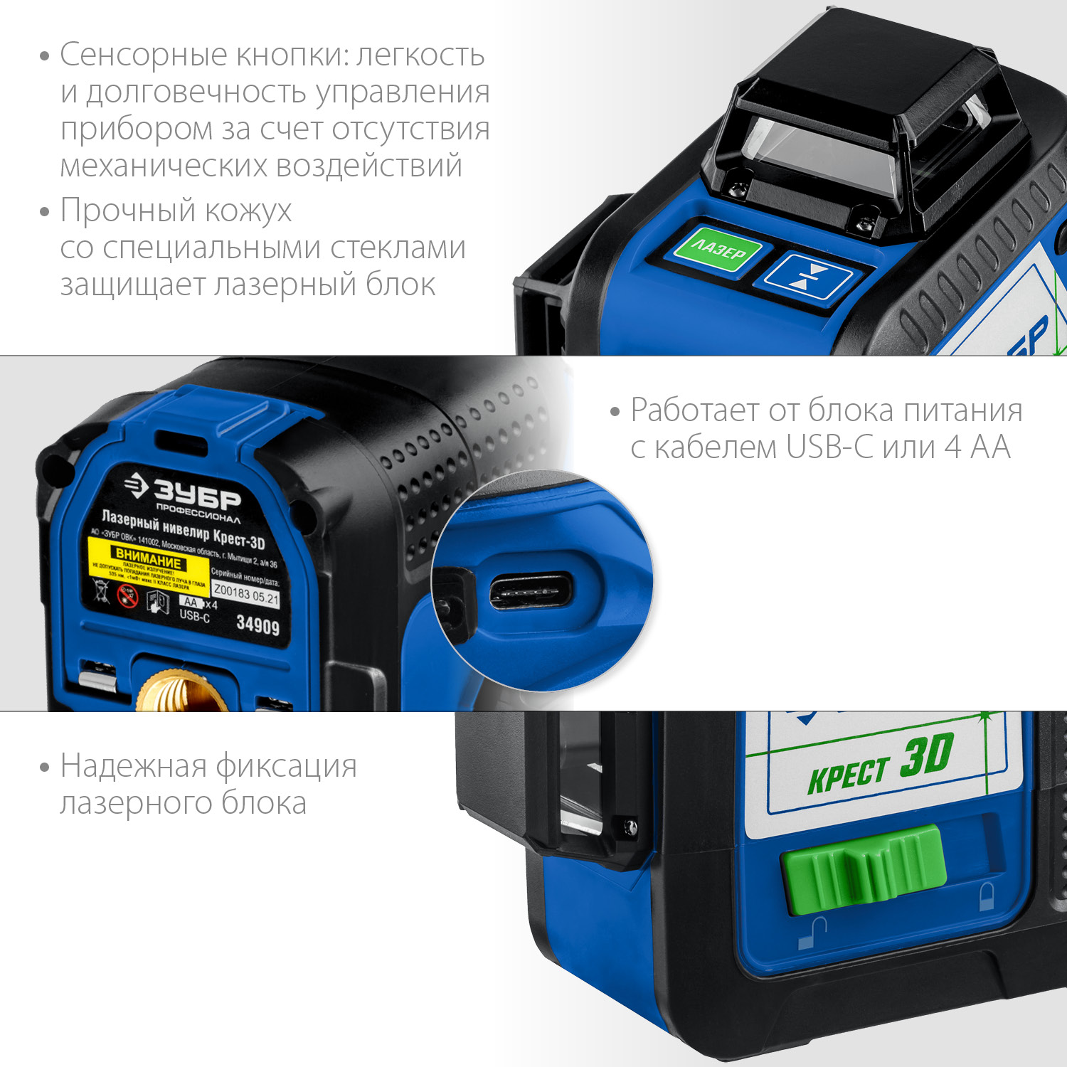 Нивелир лазерный зеленый ″Крест-3D″, 360° 34909