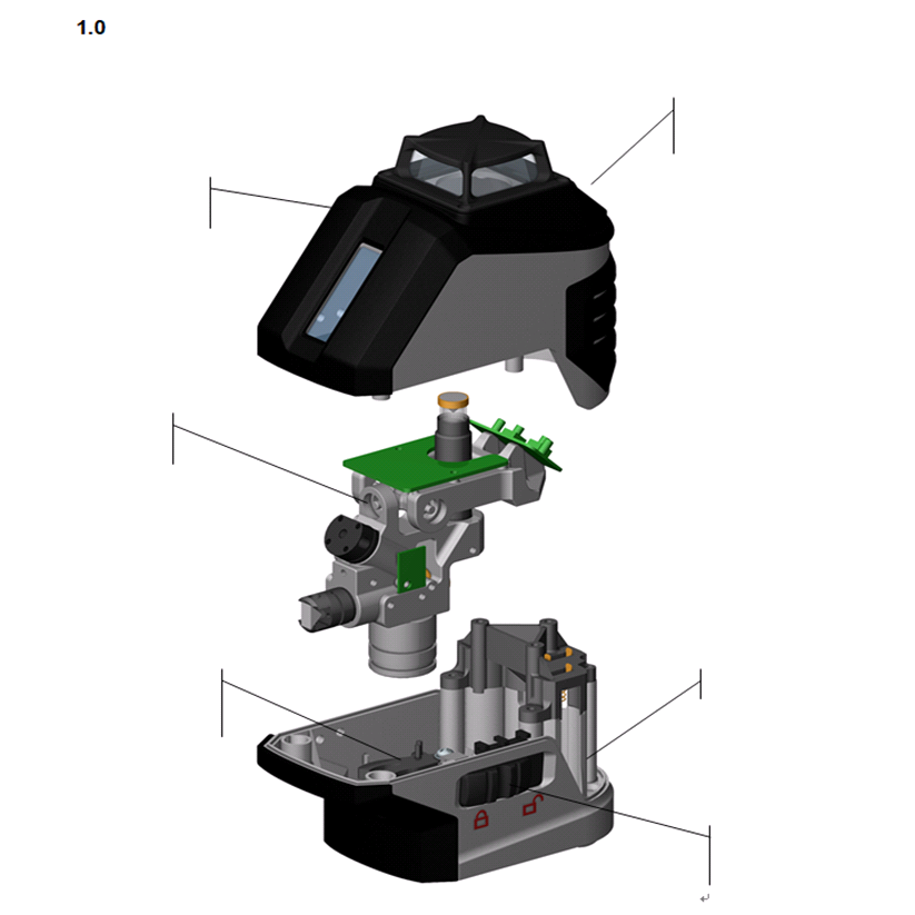 1 x360 ° горизонтальный луч + вертикальная луч. Отвес.