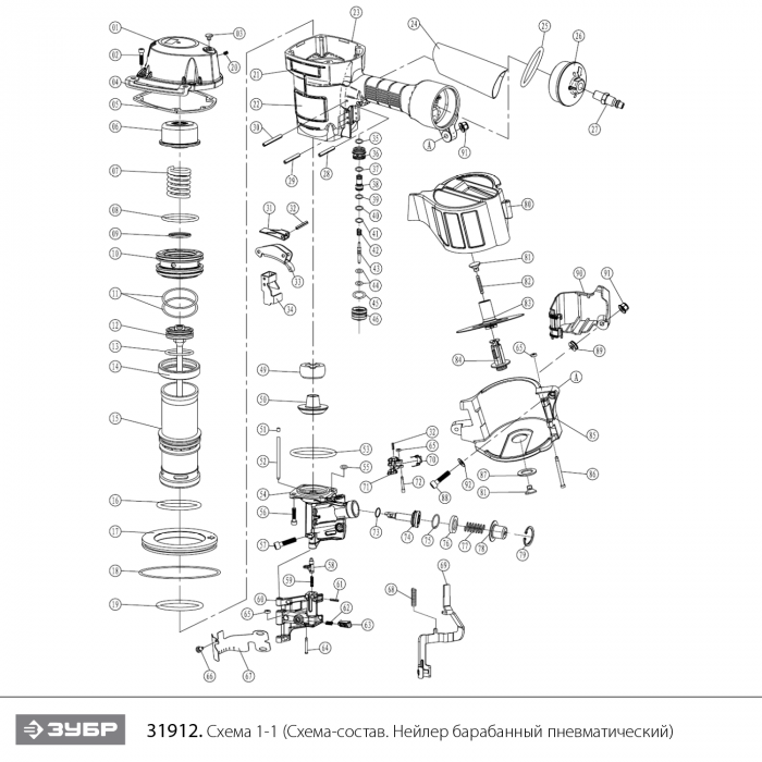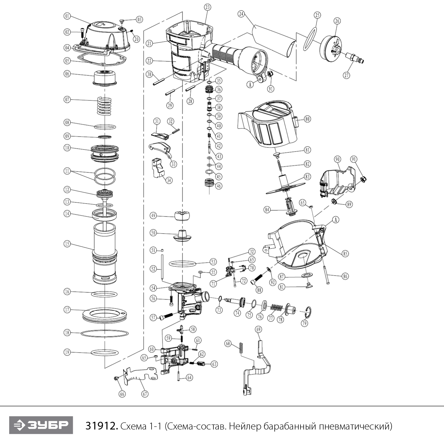 Нейлер пневмоинструмент предназначен для производства паллет (поддонов) и других изделий из дерева, таких как тара, ящики и упаковка с гвоздями длиной 45-70мм барабанного типа.