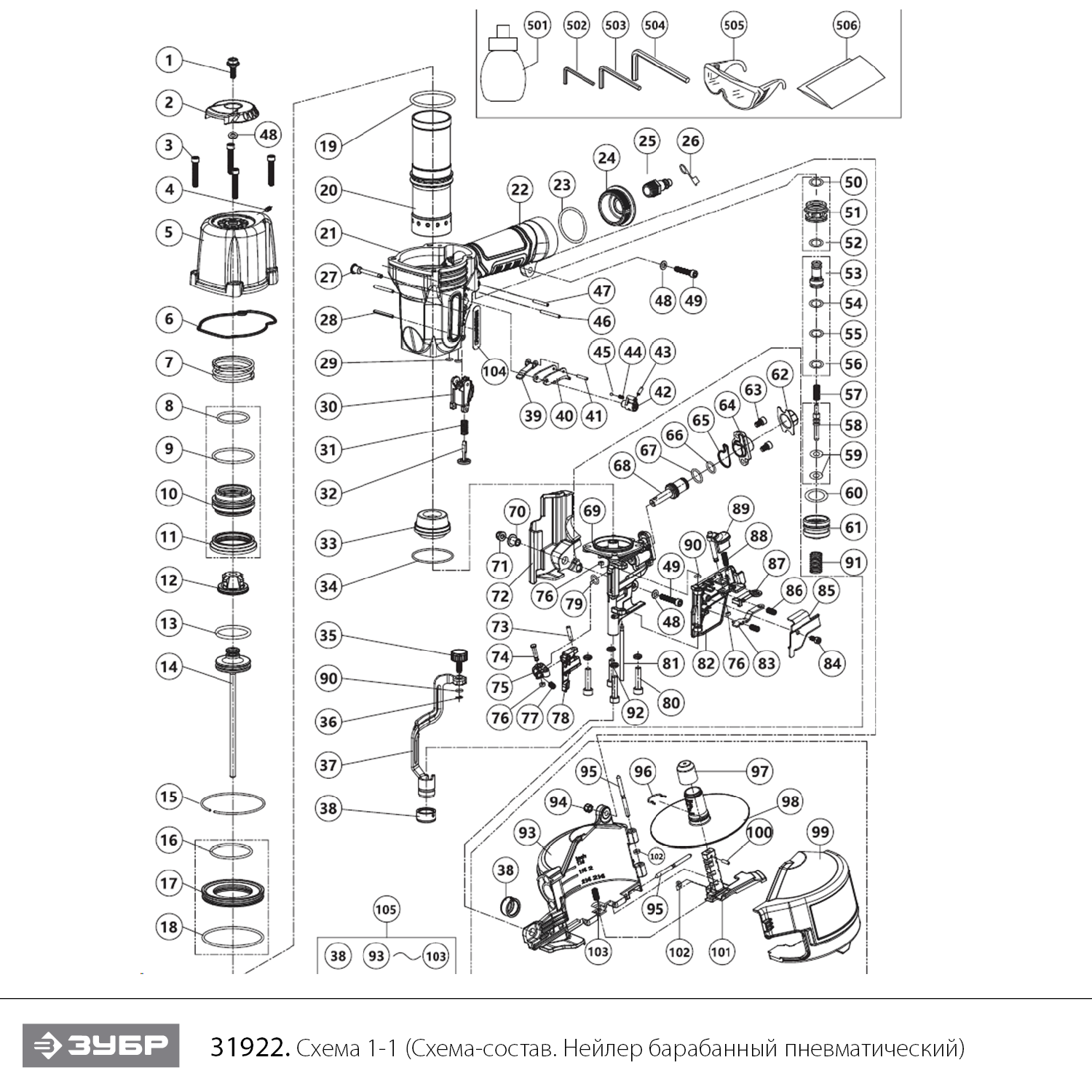 Нейлер пневматический отделочный предназначен для отделочных работ с гвоздями барабанного типа длинной 22-45 мм.Работает как с обычными гвоздями так и с оцинкованными на пластиковой ленте.