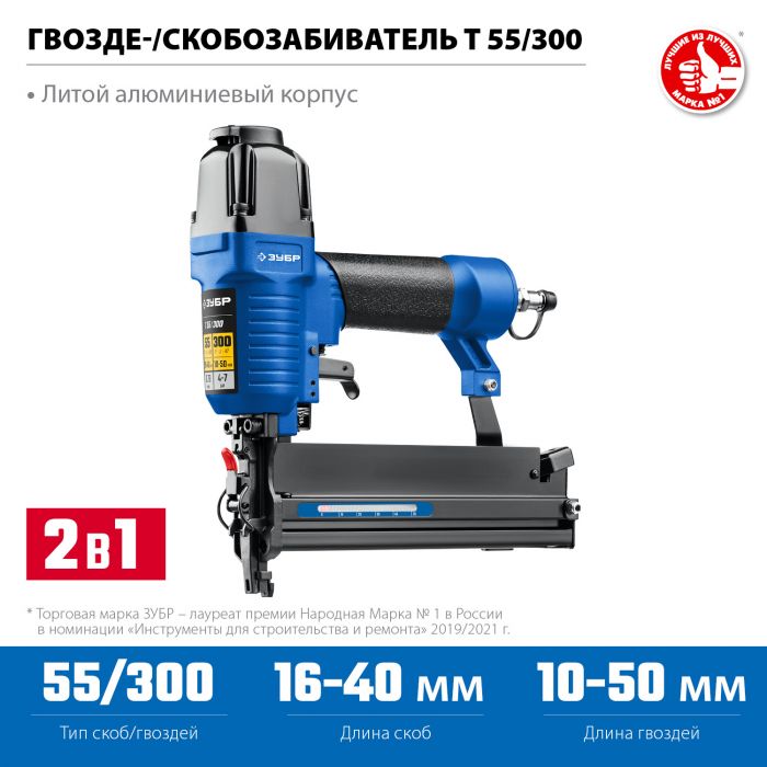 Универсальный пневматический инструмент ″2-в-1″ - работает с гвоздями и скобами.