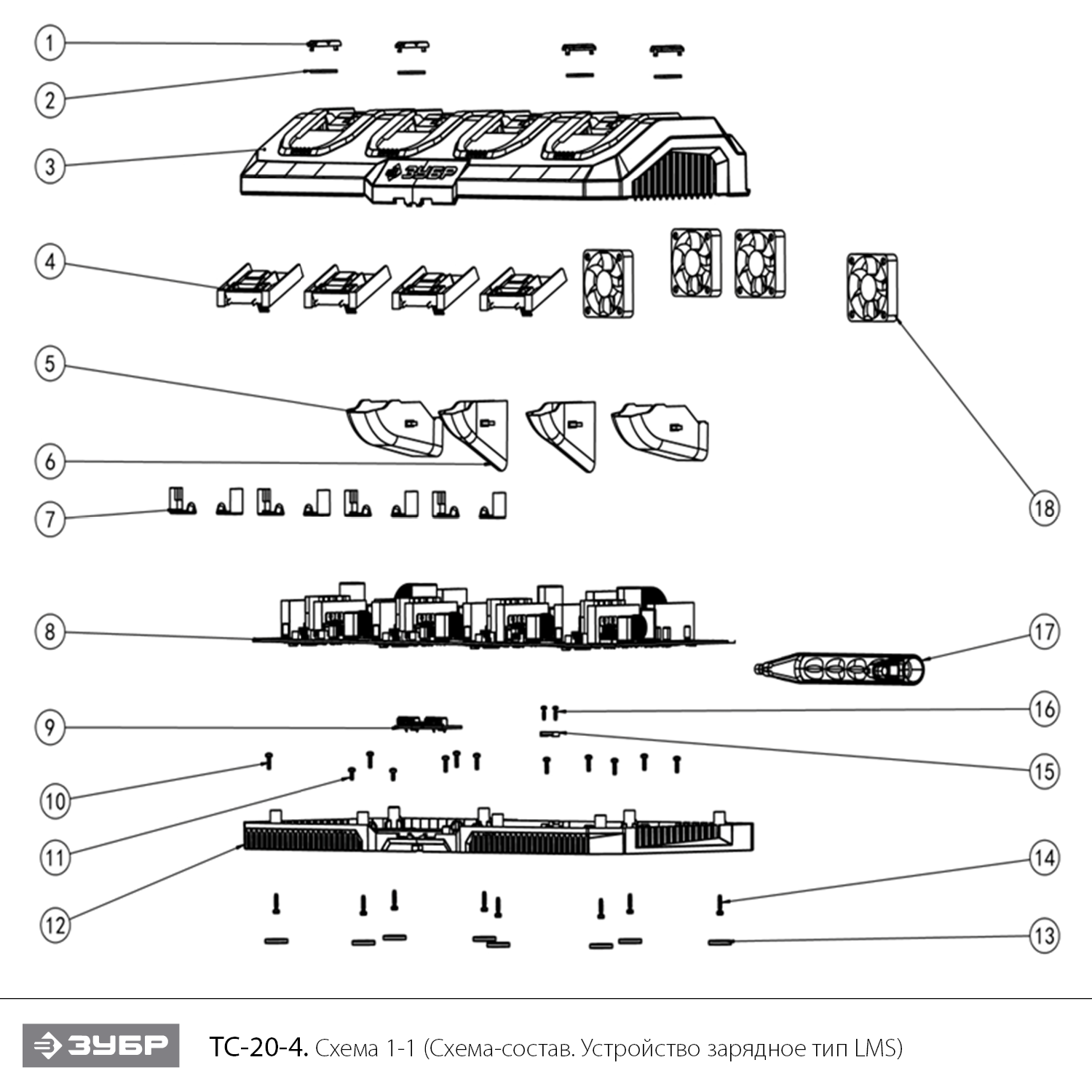 Зарядное устройство Turbo CHARGE для АКБ 20 В, 4 порта, 9 А, тип LMS TC-20-4